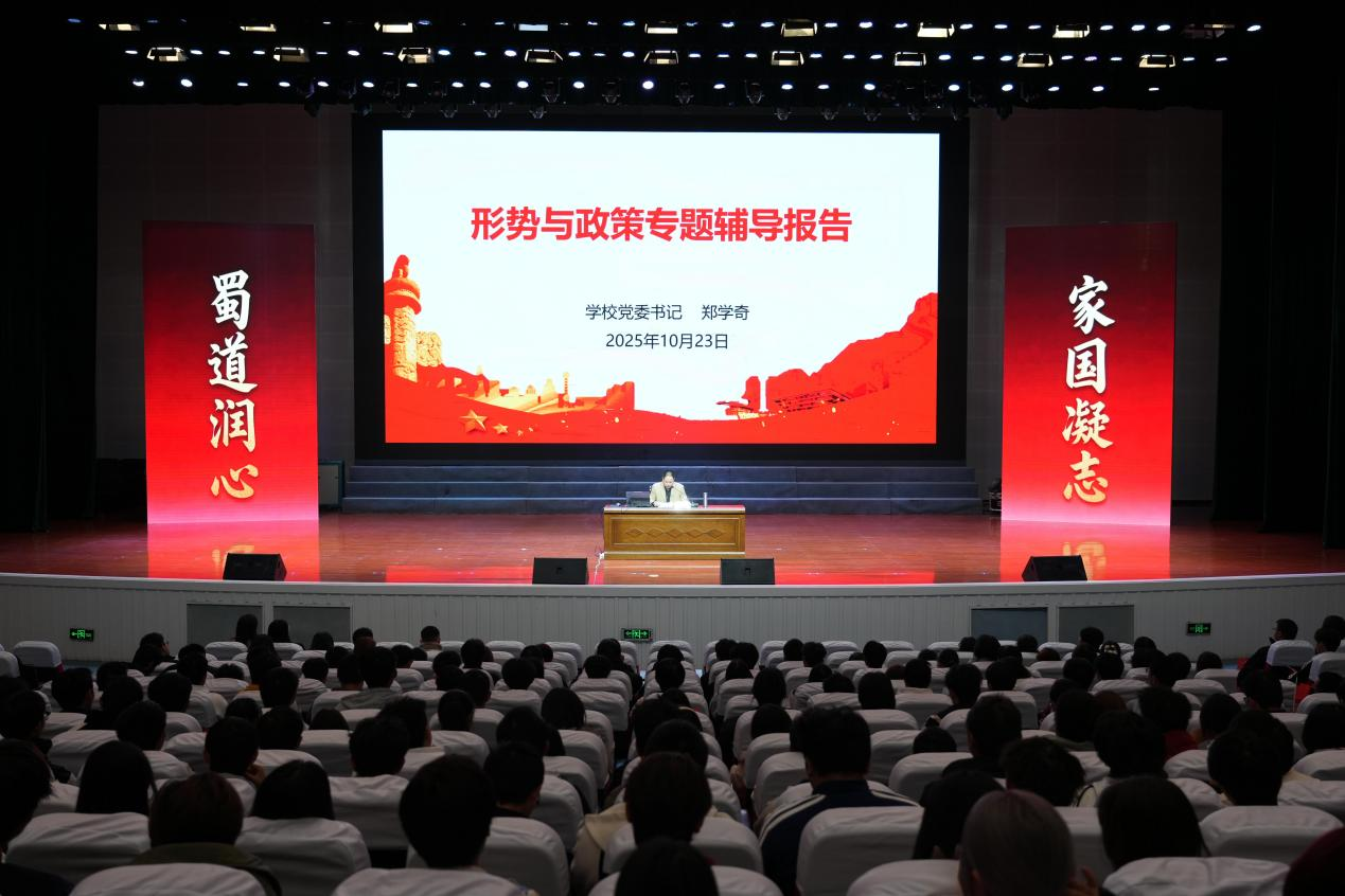 讲座中,郑学奇以《擎信仰之炬赓续抗战精神 铸爱国之情镌刻盛世华章》为题,从历史回响、川军荣光、省市发展三个维度,深入浅出地讲述了四川昔日倾全省之力支援民族救亡图存,今日则以经济大省之肩勇挑高质量发展大梁的战略担当,引导广大学生从蜀道栈道的烽火故事里感悟民族气节,从川军出征的英雄事迹中汲取奋进动能,从四川的高质量发展中坚定理想信念。