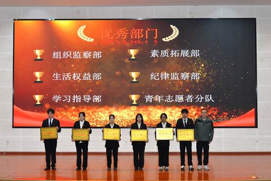 会议对过去一年在团学工作中表现突出的集体和个人进行了表彰,为第五届主席团成员颁发了聘书。