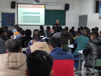 加强学校内涵建设提高学院社会影响力,2019年11月21日下午,我系教师王刚接受四川核工业技师学院的邀请,为中核二三建设有限公司班组长做电气知识讲座任务。