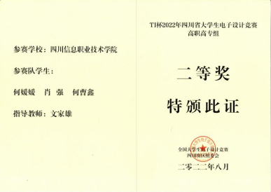 5.在2022年8月获四川省大学生电子设计竞赛(高职高专组)二等奖