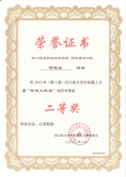 19.在2023年10月获第八届四川省大学生机器人大赛“智造大挑战”二等奖