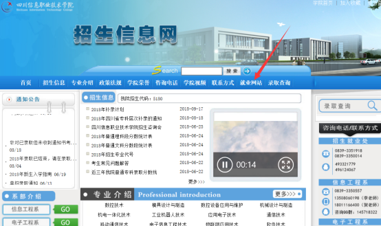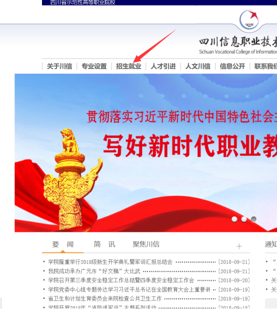 1. 打开http://www.scitc.com.cn/,进入四川信息职业技术学院官网,点击就业招生,进入招生信息网。