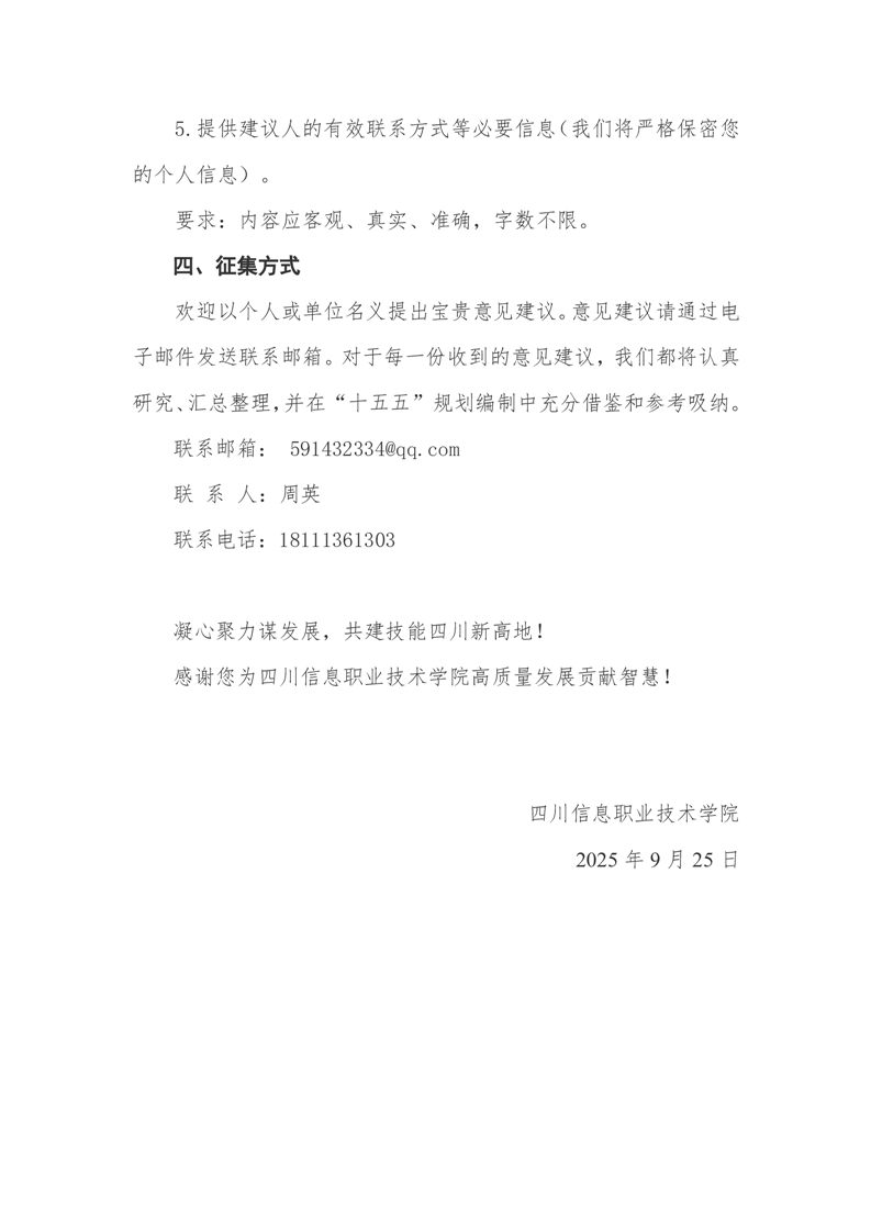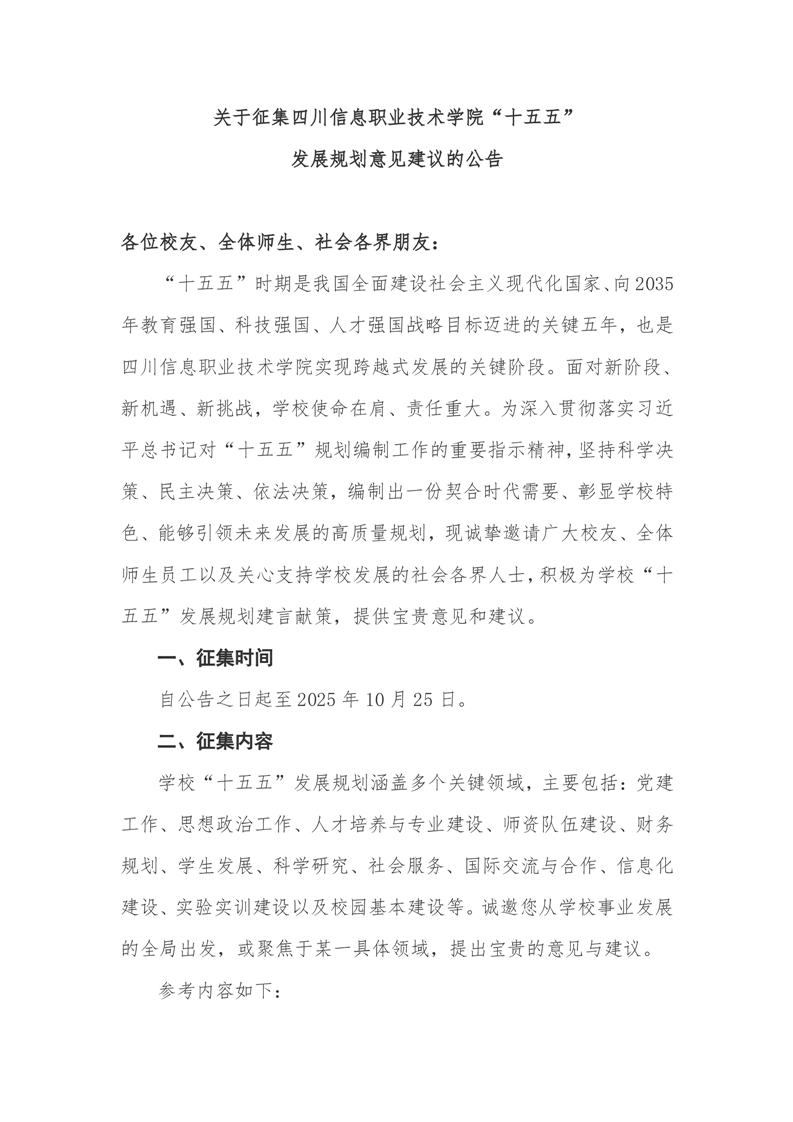 关于征集四川信息职业技术学院“十五五”发展规划意见建议的公告